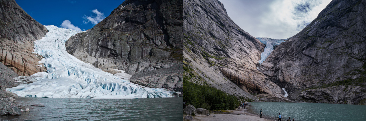 Die Zelte abgebaut und dann den kurzen Spaziergang zum Briksdalsbreen gemacht. Hier noch ein Vergleichsfoto von 2006 und 2022. Nicht mehr viel da.