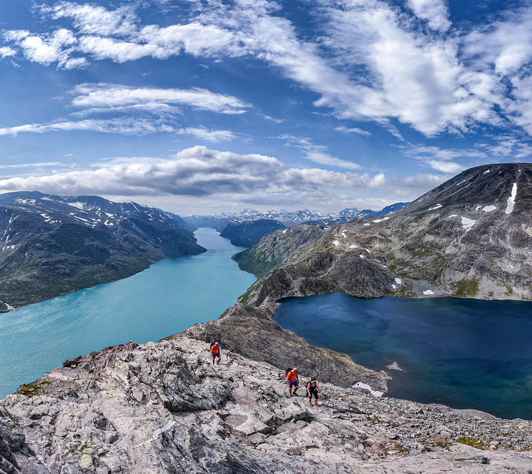 Also bin ich mit 20kg-Mehrtagesrucksack los auf den Besseggen. Wunderschönes Wetter und wunderschöne Aussichten. Allerdings tausende andere unterwegs, da das eine der beliebtesten Wanderungen in Norwegen ist.