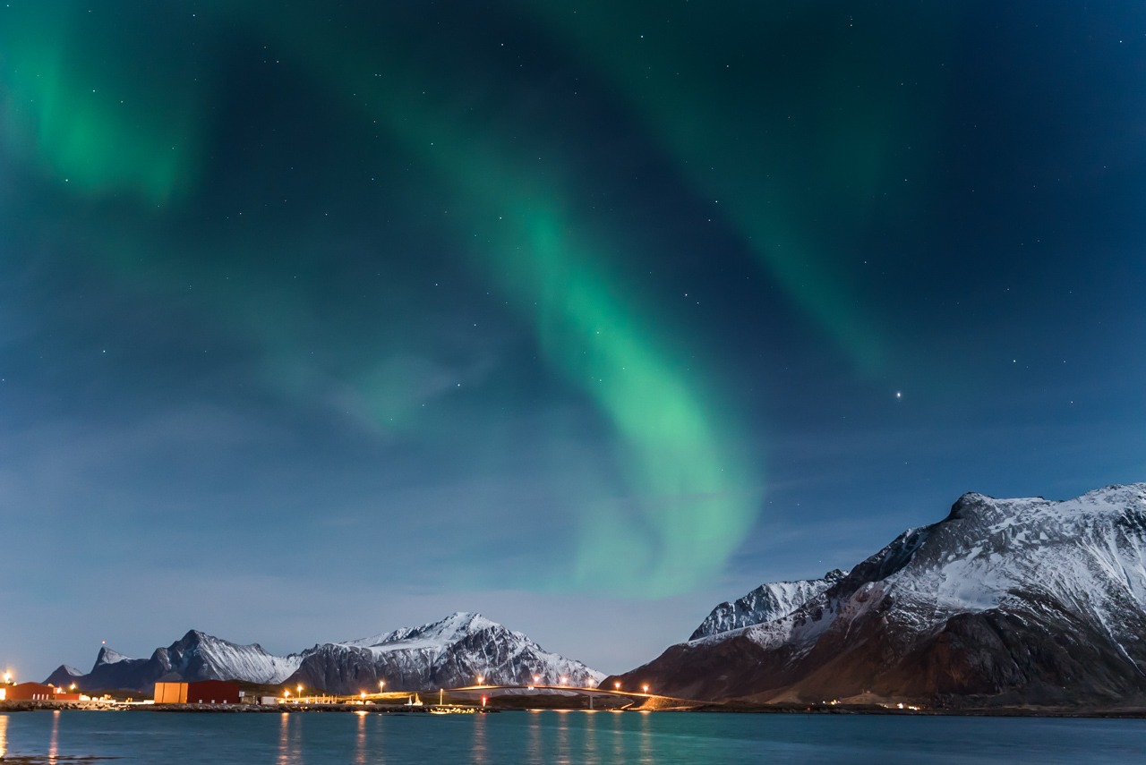 In der Nacht sind wir trotz mieser Vorhersage aufgebrochen und haben zumindest noch ein paar schneebedeckte Berge fotografiert. Auf dem Rückweg im Selfjord ist noch ein marginales Nordlicht aufgetaucht.